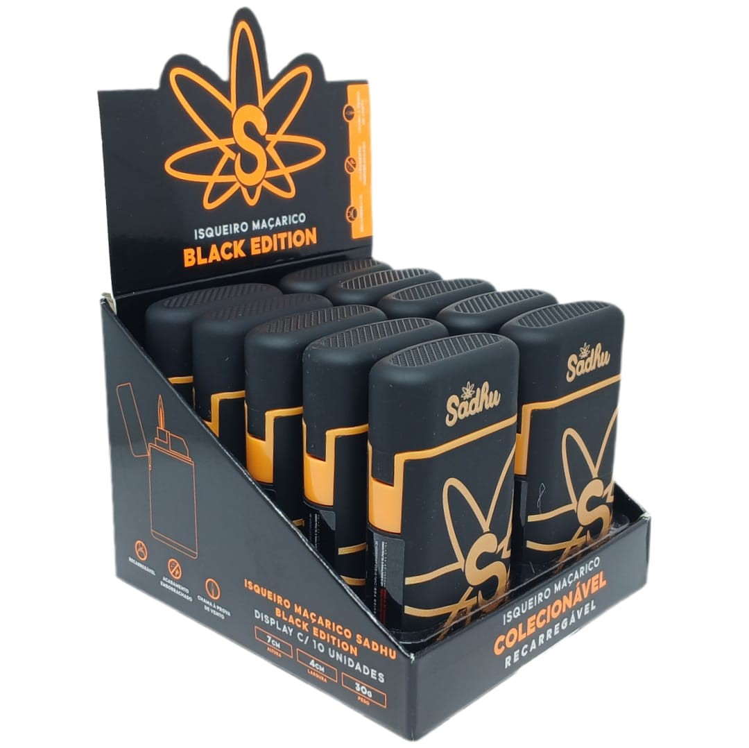 Isqueiro Maçarico Sadhu 'Black Edition' - Display 10 un